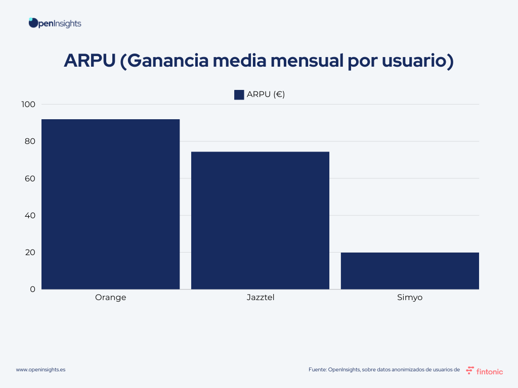 – Orange: Con un ARPU de 90€ aprox., se posiciona como la marca premium, dirigida a consumidores que buscan servicios de alta calidad y están dispuestos a pagar más por ellos.
